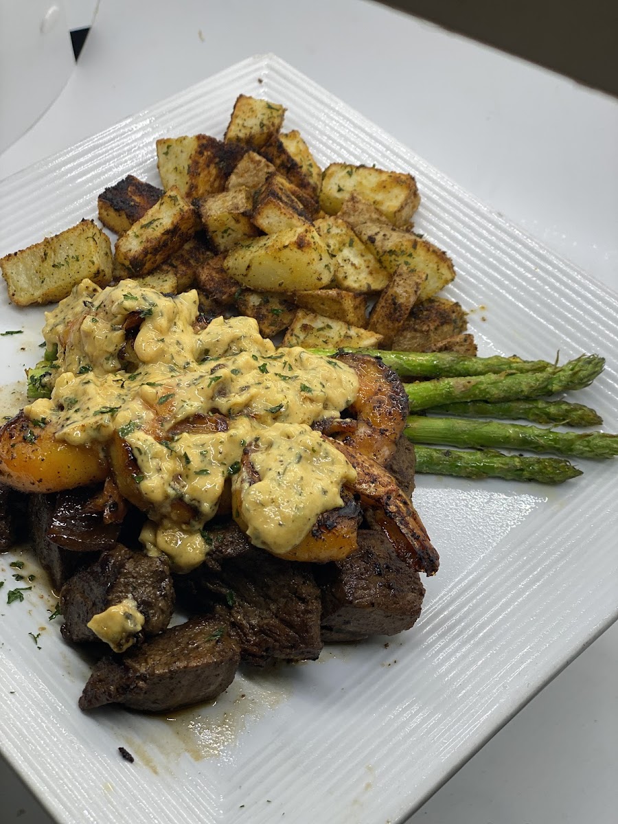 If you're in the mood for more than just bites, dive into the Steak Tips—seared steak bites paired with your choice of delicious sides, or revel in the rich flavors of the Seared Salmon, excellently prepared and served with a signature sauce. No matter your preference, each dish is presented with care, ensuring your taste buds are not only satisfied but celebrated.